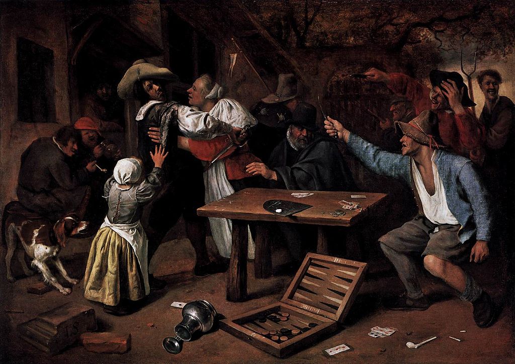 The title painting is ‘Argument over a Card Game’, Jan Steen (1625/26–1679) in the Gemäldegalerie collection, from Wikimedia.